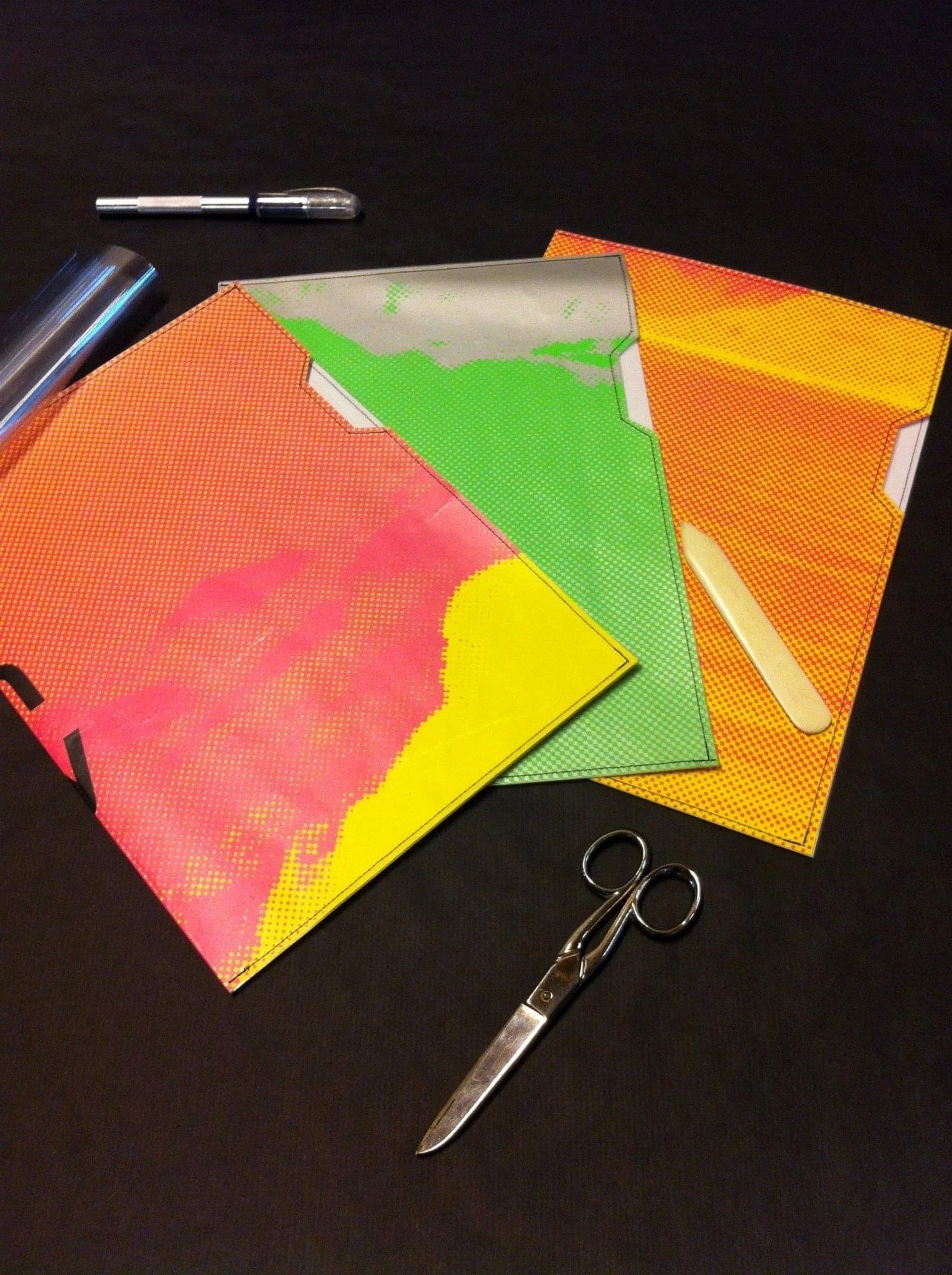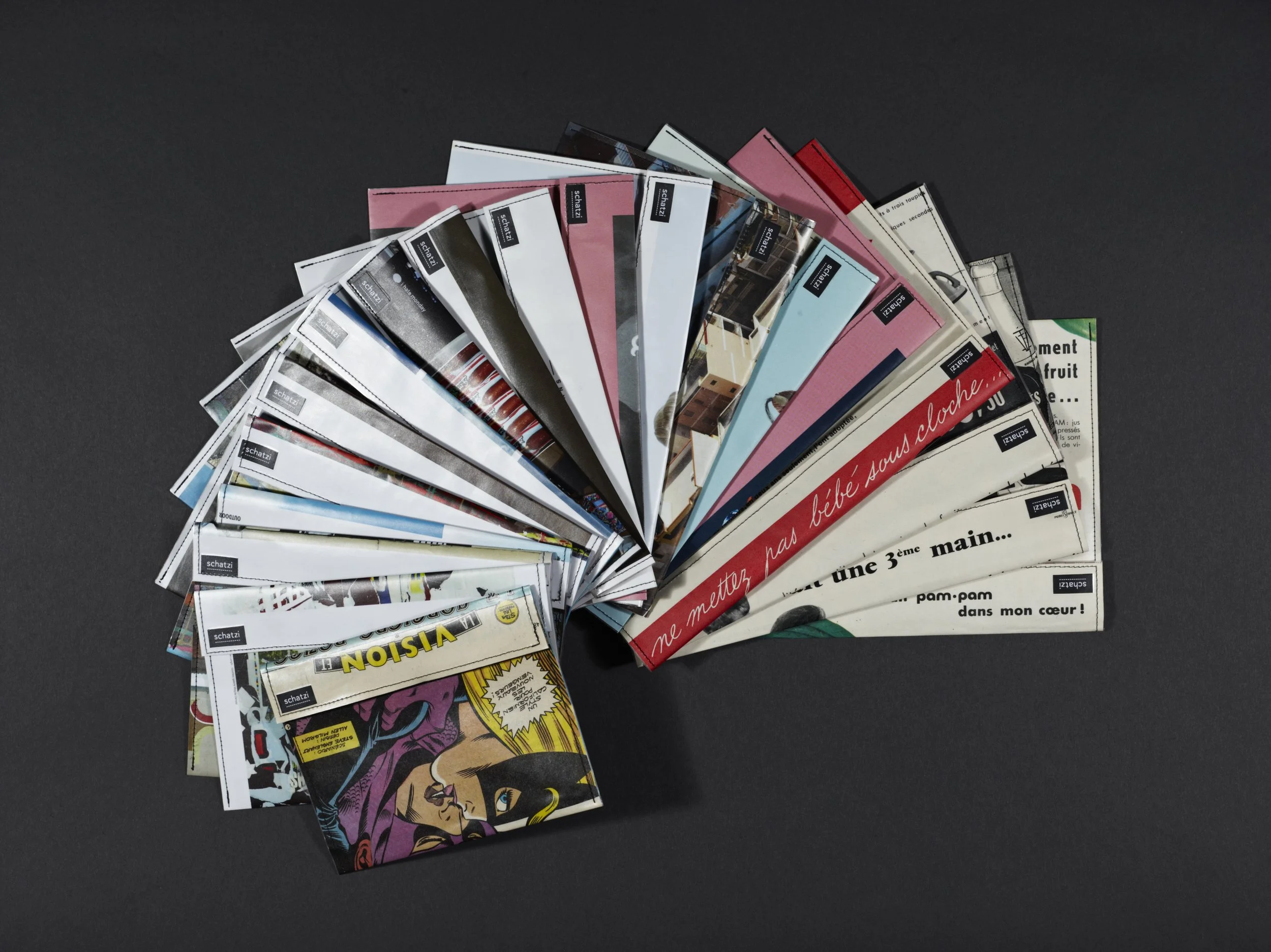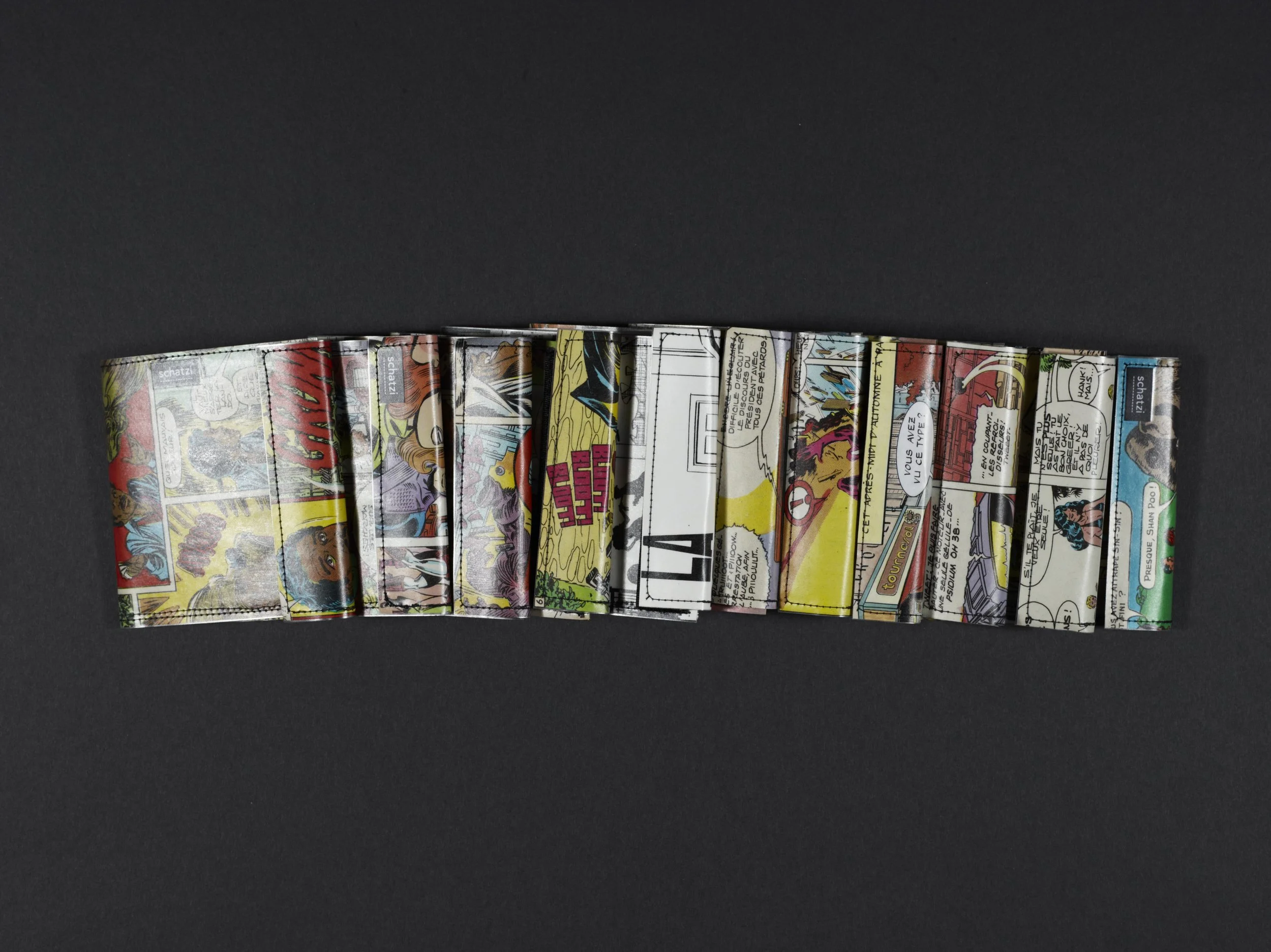 schatziProjet d’upcycling de papier. Transformer des bandes dessinées et affiches en portes-monnaies et pochettes.